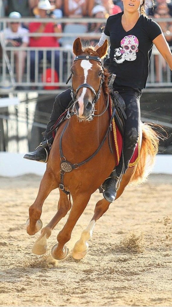 Je travaille quotidiennement depuis plus de 15 ans avec des chevaux, des humains, au sein des équipes de tournages et de spectacles. J’ai appris la cascade à cheval dans le parc d’attraction la Mer de Sable, ce qui m’a permis d’intégrer la prestigieuse équipe de cascade équestre de Mario Luraschi depuis 2011. Lors de spectacles, j’ai foulé avec mes chevaux les pistes des hippodromes de France, du Qatar, les salons du cheval, les férias d’Occitanie et de Corse, les fêtes médiévales de France et d’Allemagne, la célèbre piste du cirque Pinder. Lors de tournages, j’ai pu chevaucher des pur-sang arabe dans le désert de Namibie pour la publicité Paco Rabanne, galoper et effectuer des cascades dans des séries comme Versailles et à la place de comédiennes comme Isabelle Adjani, Victoria Bedos, Samantha Morton…