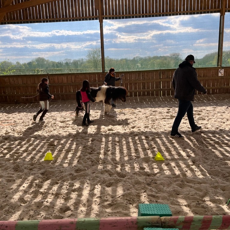 La séance se déroule en 3 parties. La première partie est un briefing qui consiste à expliquer qu’est ce que l’équicoaching, le fonctionnement du cheval, à connaitre vos attentes pour la séance. La seconde partie est la rencontre avec le cheval. Vous aller faire plusieurs exercices collectifs et individuels avec un cheval ou un poney en liberté. Tout se fait à pied, il n’y a aucune expérience équestre requise, vous partagez avec lui un moment unique. Pour les personnes ayant une appréhension, il y a une première partie de désensibilisation. En dernière partie, nous faisons un débriefing pour mettre en lumière votre ressenti, vos émotions, les clefs que vous avez acquis durablement grâce au cheval pendant l’exercice d’équicoaching.